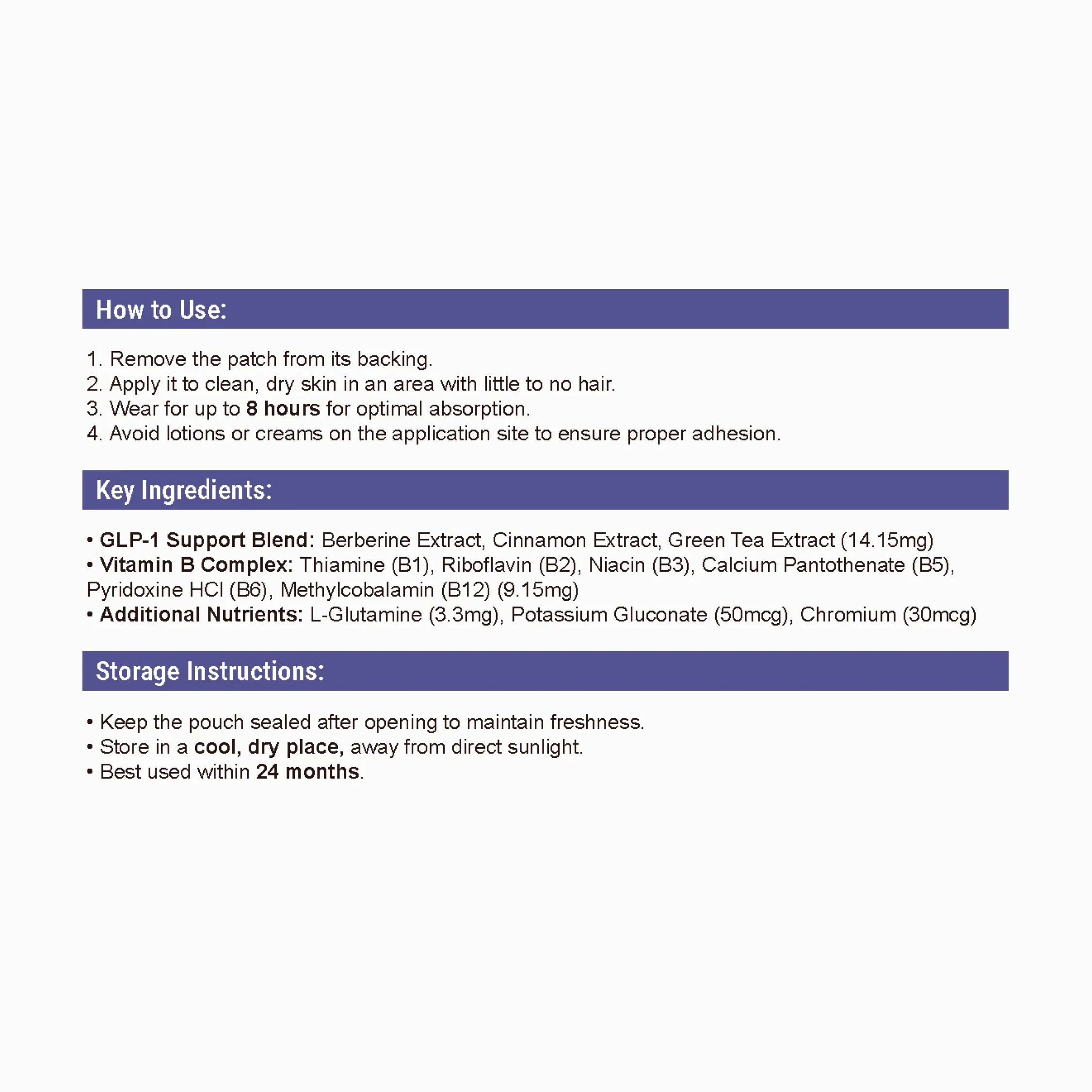 Transdermal delivery gives your body steady, 8–12 hour support for appetite control and balanced metabolism.